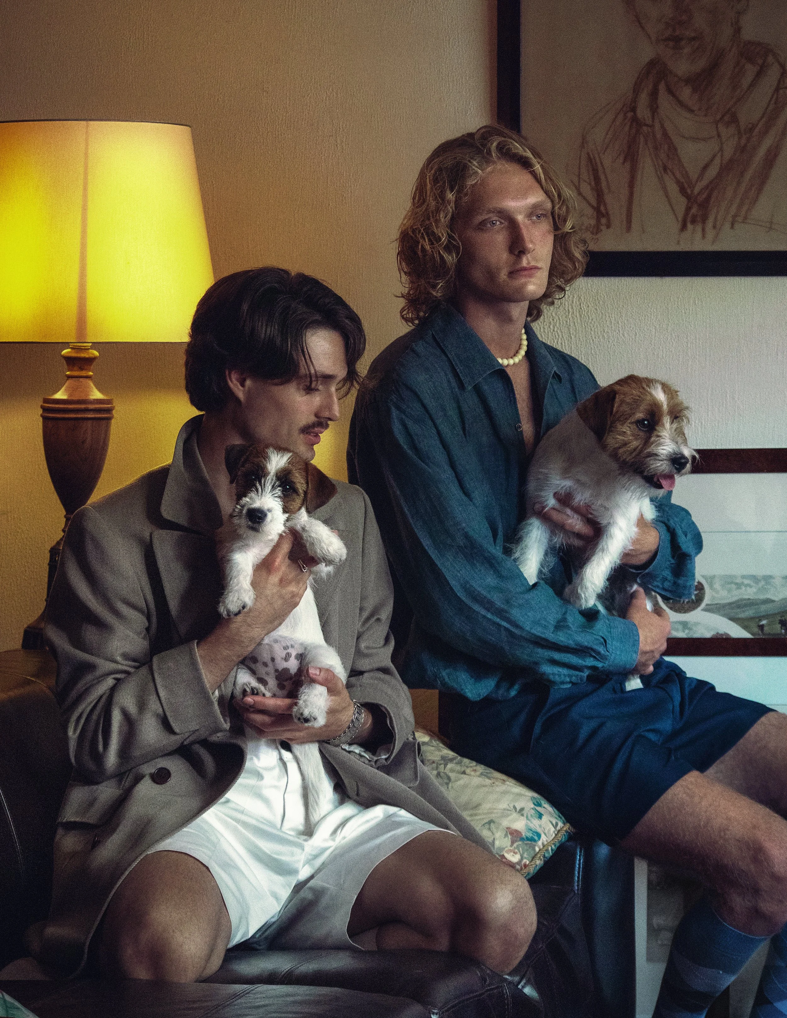 Previous Pages: MODEL VEST by British House (worn throughout), CHINO by Dunhill (worn throughout), GLASSES byMoscot (worn throughout), WATCH byMont Blanc (worn throughout), BRACELET by antique silver (worn throughout), CurrentPage: MODELS WEAR COAT by Burberry (worn throughout), SHORTS by Zegna (worn throughout), BRACELET byantique silver (worn throughout), SHIRT by 100Hands (worn throughout), Vintage Tennis Shorts byPUMA (worn throughout), SOCKS byBurlington (worn throughout), NECKLACE byantique ivory (worn throughout),